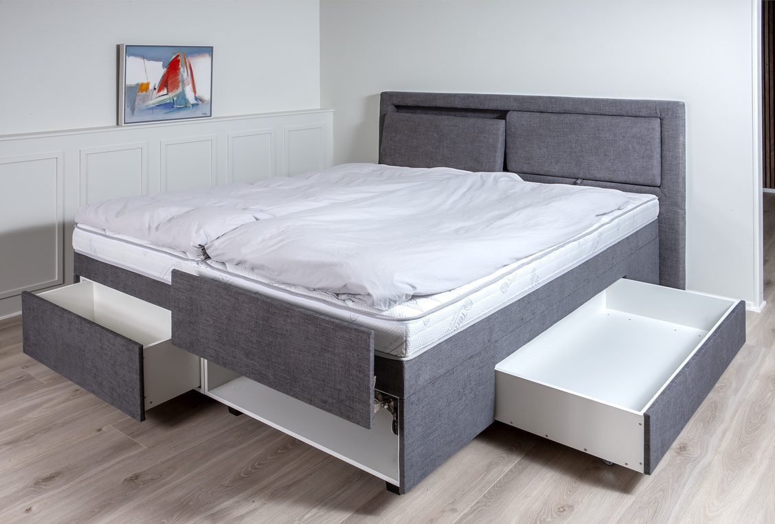 Lit à Eau/Waterbed Chicago avec cadre capitonné de tissu ou de similicuir à 2 grands tiroirs de 47 cm de profondeur: