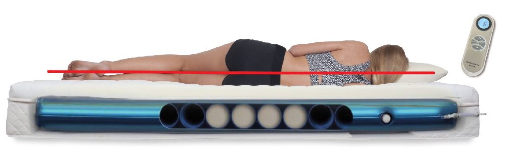 Le matelas Matrair à deux suspensions à air (sans renforts lombaires) permet un réglage indépendant de la fermeté du soutien des épaules et du bassin.